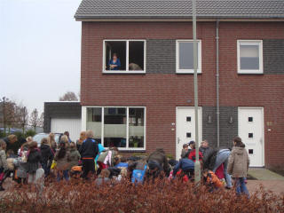 luid geroep (bal, bal, bal.....) van de kinderen wordt vanuit de woning