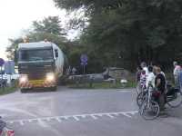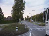 vrachtwagen over de vele verkeersbulten. |