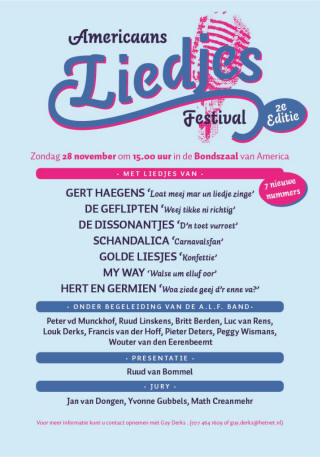~~~~~~ Americaans Liedjes Festival Zondag 31 januari 2010 om 15.00 uur in de Bondszaal van America.