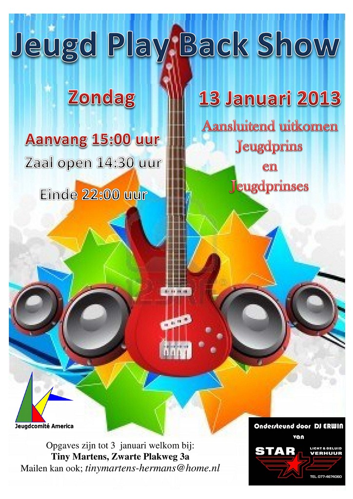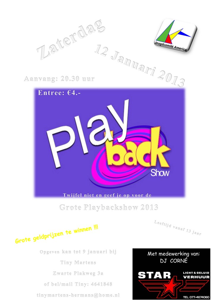 Dit zal zijn tijdens de Jeugd Playbackshow in De Bondszaal van America.